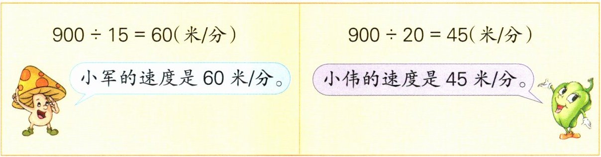 8 走一段900米长的山路,小军用了15分钟,小伟用了20分钟。你能分别算出他们的速度吗?