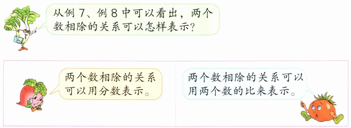 从例7、例8中可以看出,两个数相除的关系可以怎样表示?