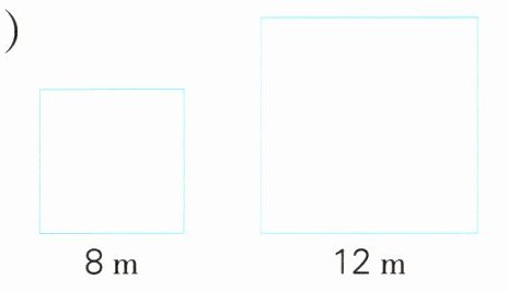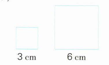 8. 分别写出每组正方形边长的比和面积的比,并化简。
