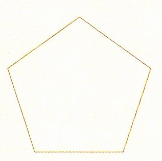 连接右边正五边形的顶点,画出一个“五角星”。在这个图形中找出不同的等腰三角形,量出每种等腰三角形的底和腰,判断它们按角的特点分类各是什么三角形,填入下表。