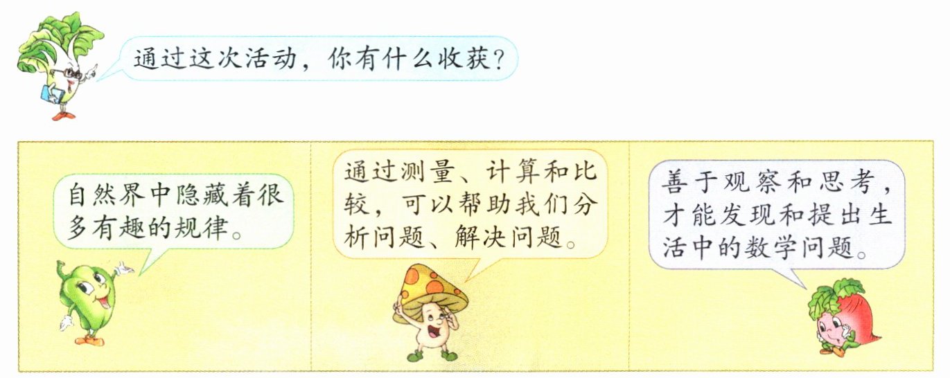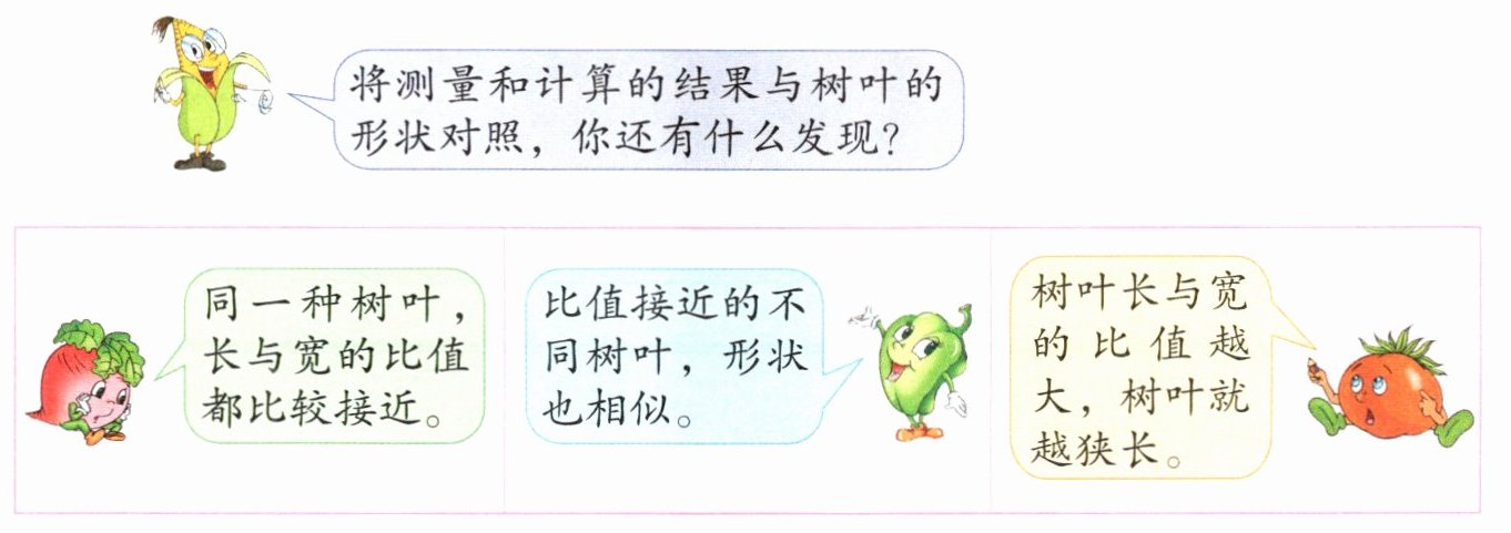 将测量和计算的结果与树叶的形状对照,你还有什么发现?