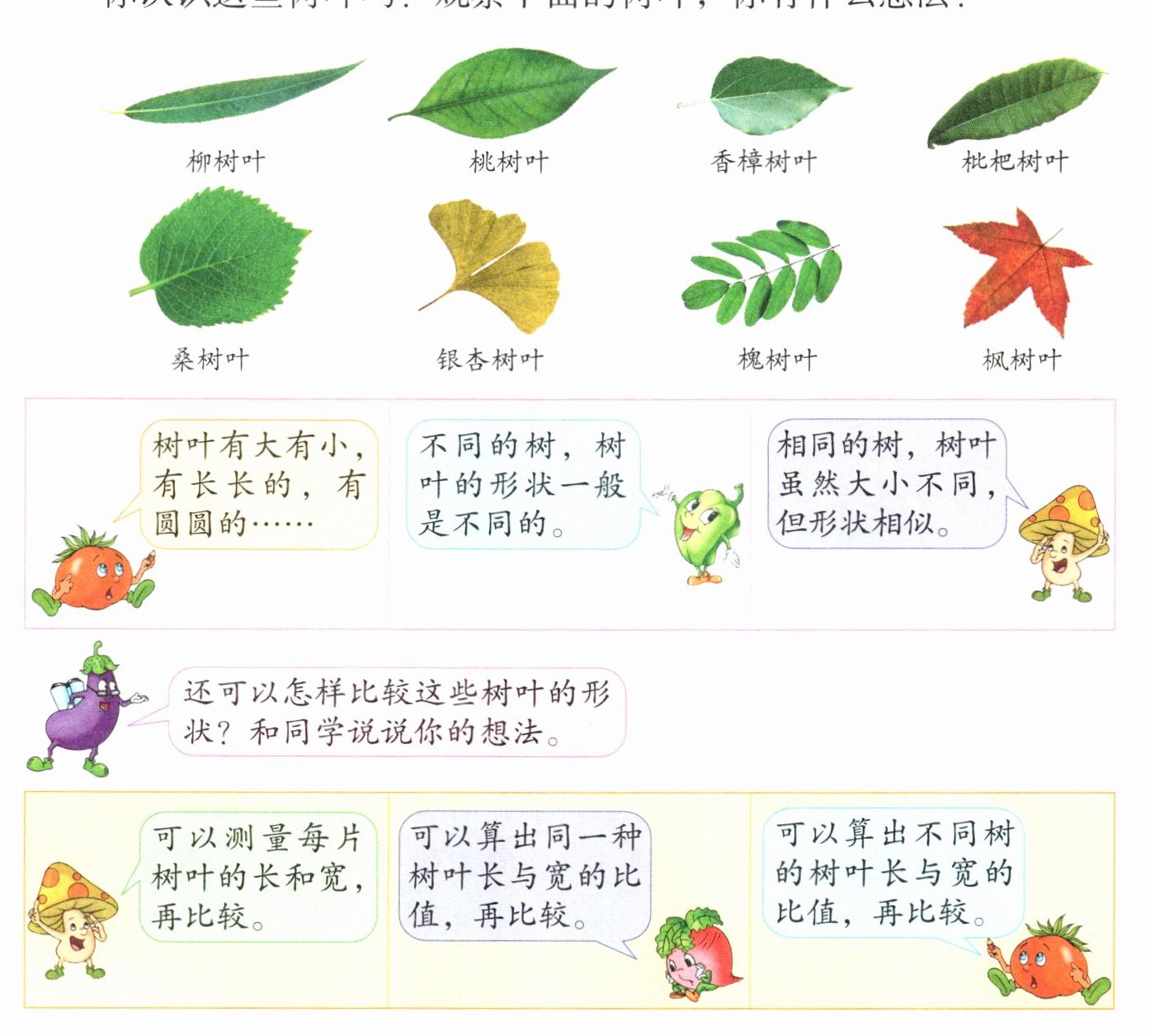 还可以怎样比较这些树叶的形状?和同学说说你的想法。