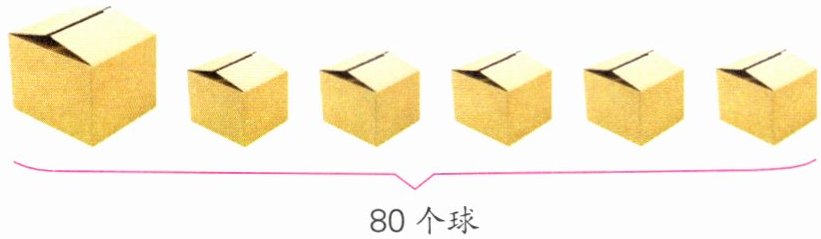 1个大盒里球的个数+5个小盒里球的个数= 80