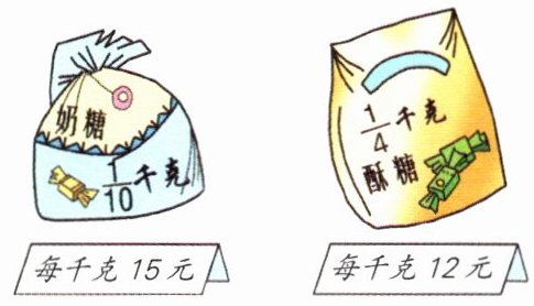 奶糖每包重$\frac{1}{10}$千克,酥糖每包重$\frac{1}{4}$千克。