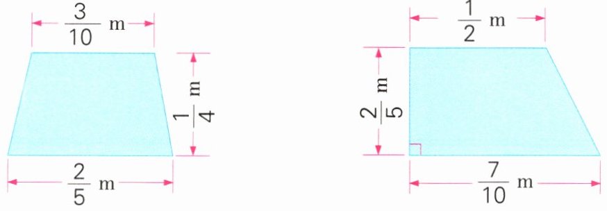 第二个梯形:$\frac{1}{2}m + \frac{7}{10}m = \frac{5}{10}m + \frac{7}{10}m = \frac{12}{10}m = \frac{6}{5}m$,$\frac{6}{5}m × \frac{2}{5}m ÷ 2 = \frac{6}{5} × \frac{2}{5} × \frac{1}{2} = \frac{6}{25}m^{2}$