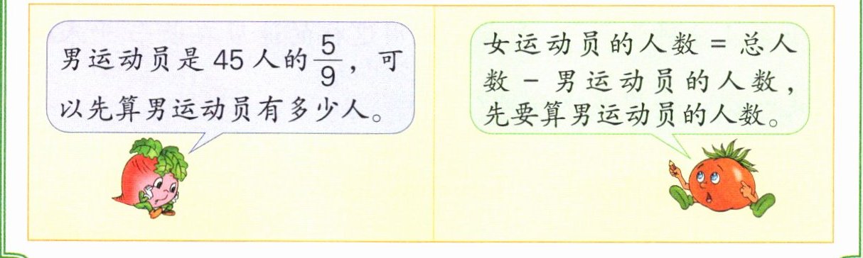 男运动员是45人的$\frac{5}{9}$,可以先算男运动员有多少人。