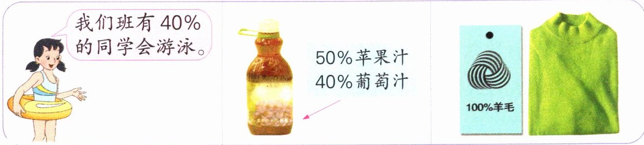 40%读作:百分之四十,含义:会游泳的同学人数占全班同学总人数的40%。