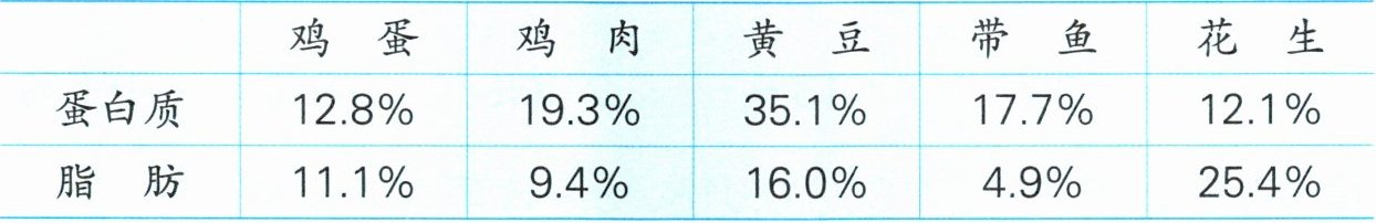 7. 几种食物中蛋白质和脂肪的含量如下表: