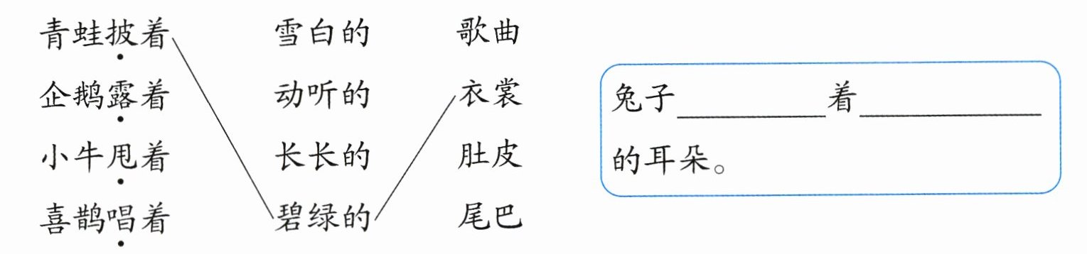 2. 照样子,将动物特点连一连,再仿写一句。(5 分)