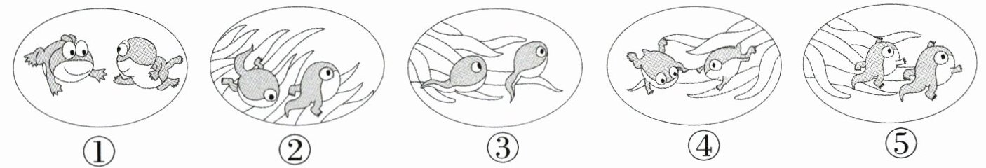 4. 乔乔拍下了池塘中的蝌蚪,并在记录本上画出了它的成长过程,请按顺序排一排: 。(4 分)