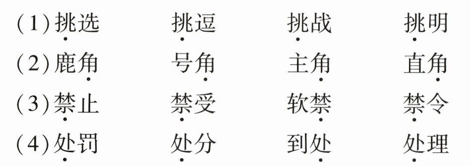 2. 找出每组中加点字的读音与其他不同的词语,在下面画“____”。