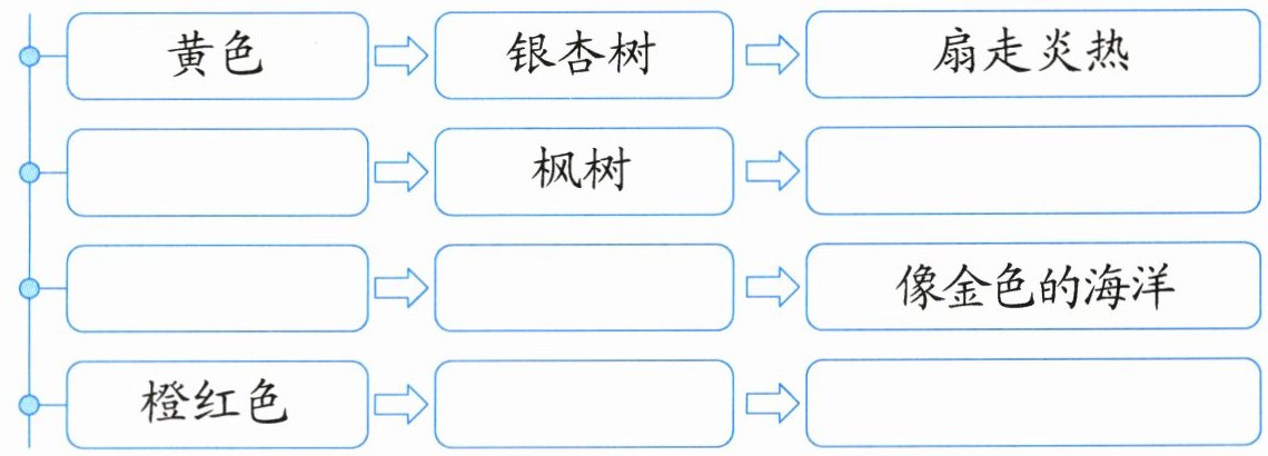 3. 秋天的雨还会把颜色分给谁呢?联系生活,发挥想象,仿照选文中画波浪线的句子写一写。______