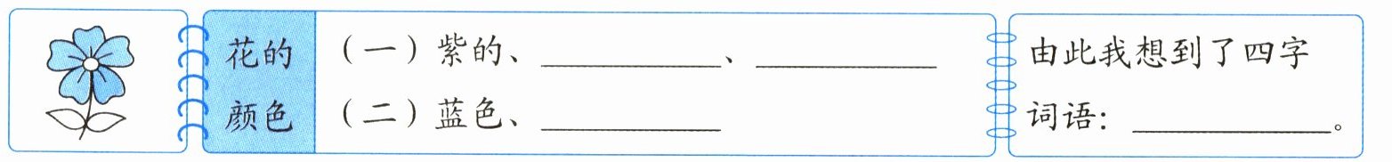 1. 黄的 白的 粉红 示例:五颜六色 2. 拟人 下雨 堇菜花、粉红的樱草花、铃兰这些花儿穿着漂亮的花瓣裙,欢快地跳着舞蹈 3. C 4. 急切 示例:终于放假啦!我们可以尽情地在草地上做游戏啦。