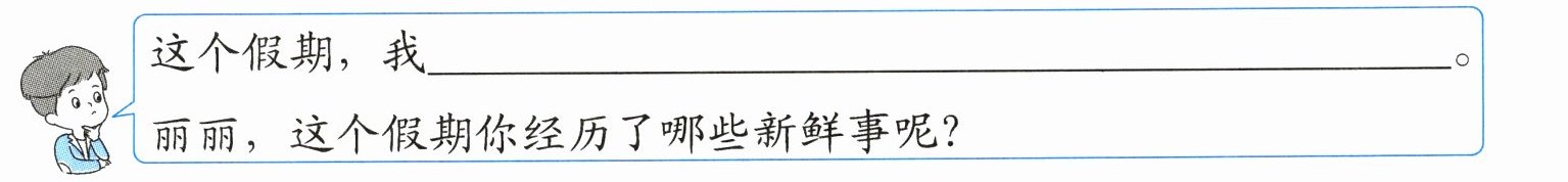 五 小语正和丽丽分享假期里自己经历的新鲜事,请你将对话补充完整。(3分)