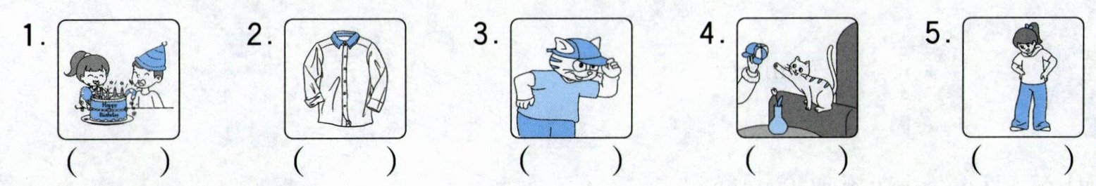 一 听录音,选出与所听内容相符的图片。(听两遍,5分)