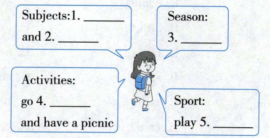1.Science 2.PE 3.autumn 4.climbing 5.basketball