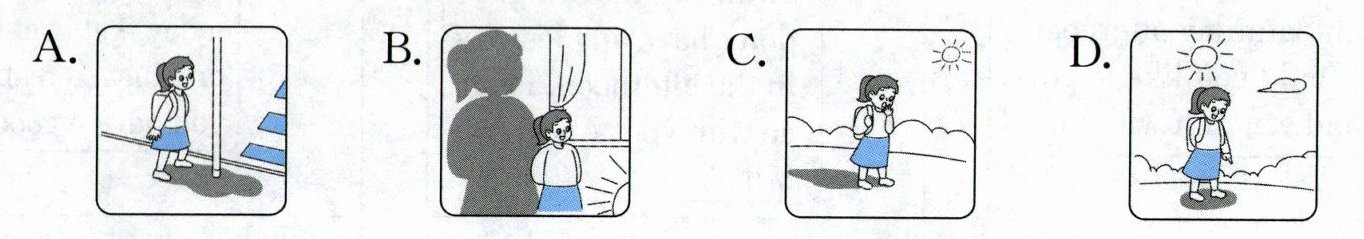 ① ____ Sometimes the shadow is behind me. ② ____ Sometimes the shadow walks in front of me. ③ ____ Sometimes my shadow gets short and small. ④ ____ Sometimes my shadow gets big and strong. I talk and play with my shadow. It’s fun. I like my shadow.