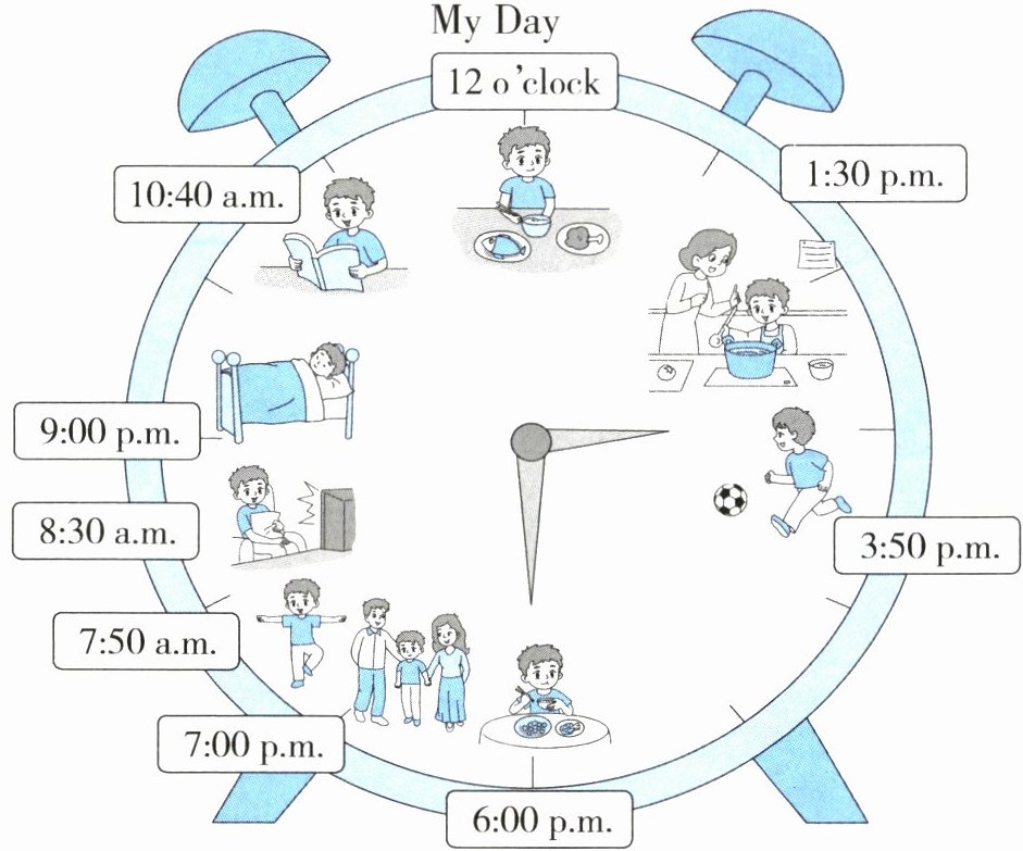 )3. We can ____ at four twenty in the afternoon.A. draw pictures B. watch a football match C. study English