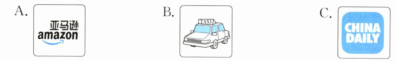 【解析】:本题可根据题目中“Lele wants to read English articles(文章). Which app can he use?”(乐乐想要阅读英文文章。他可以使用哪个应用程序?),结合选项中各应用程序的名称和用途来进行解答。A选项“amazon”是亚马逊,主要用于购物;B选项是一辆出租车的图片,与阅读英文文章无关;C选项“CHINA DAILY”是《中国日报》,是一个英文报纸应用程序,可用于阅读英文文章。