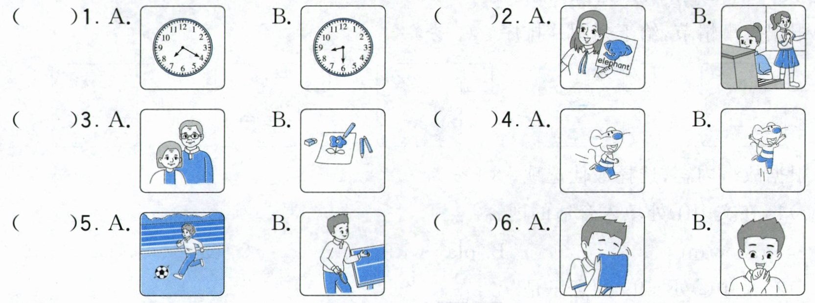 一 听录音,选出与所听内容相符的图片。(听两遍,6分)