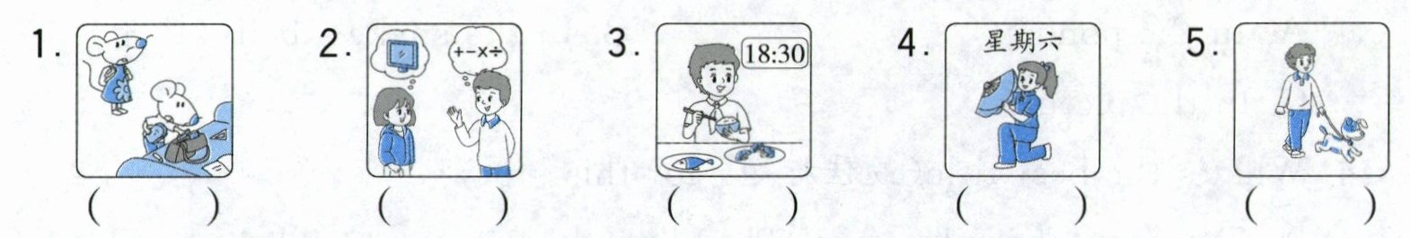 二 听录音,判断所听内容与图意是否相符,相符的写"T",不相符的写"F"。(听两遍,5分)