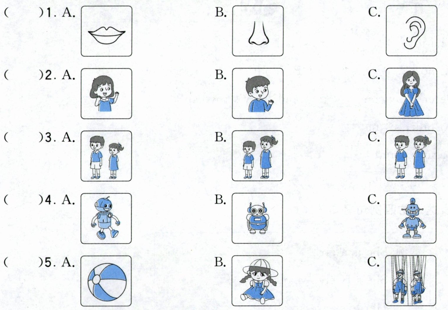 一 听录音,选出与所听内容相符的图片。(听两遍,5 分)