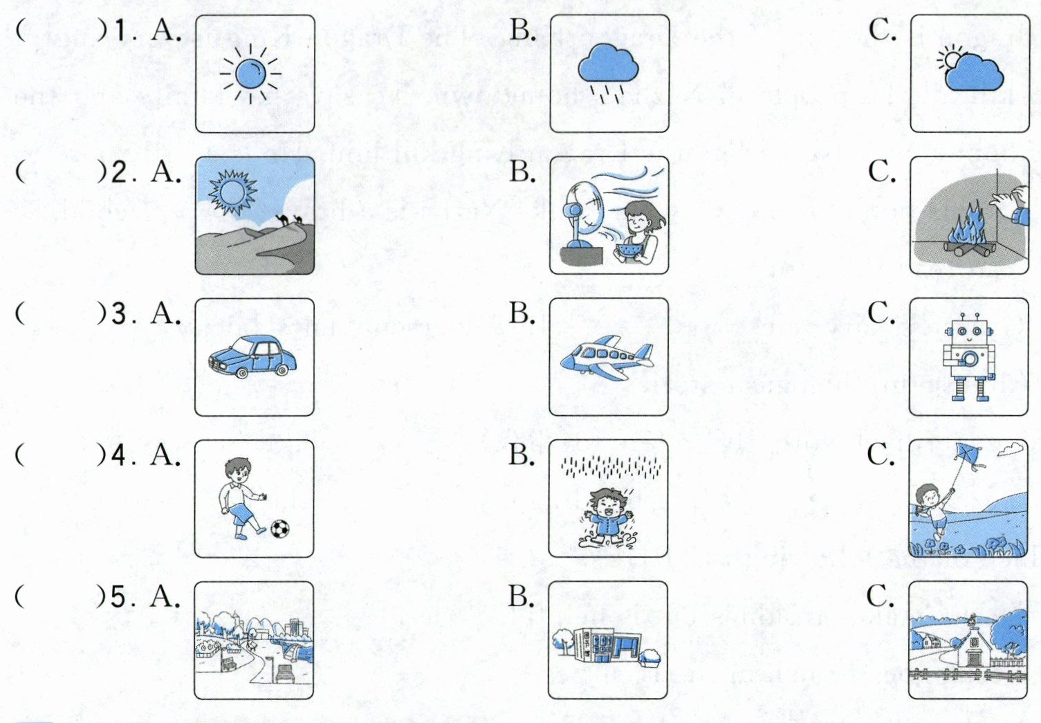 一 听录音,选出与所听内容相符的图片。(听两遍,5分)