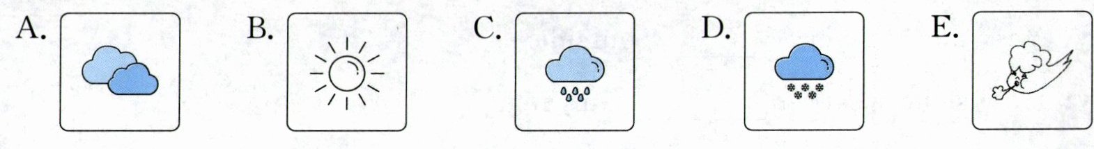 五听录音,根据所听内容找出下列城市的天气,将字母序号填入括号内。(听两遍,10分)