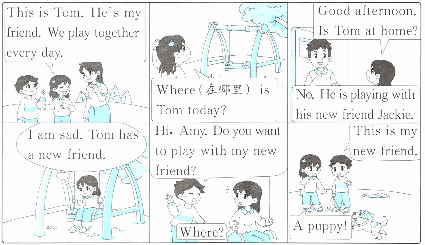 )3. Amy is happy because (因为) Tom has a new friend.(