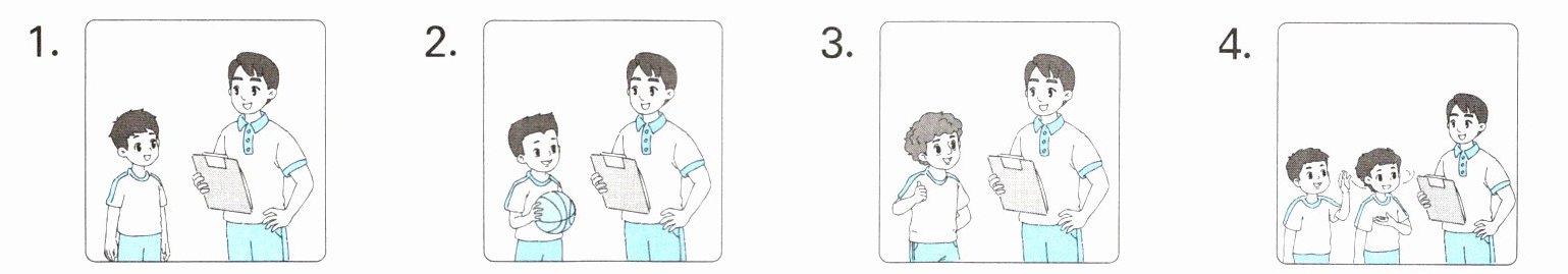 三、【比赛检录】比赛即将开始,老师正在检录。为下列图片选择合适的对话。
