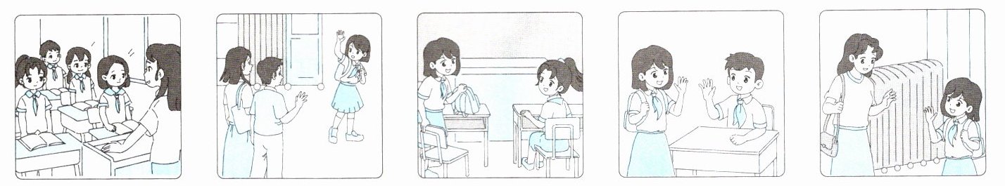 一、清晨,Yanyan 告别了父母去上学。听录音,用数字 1—5 给下列图片排序。