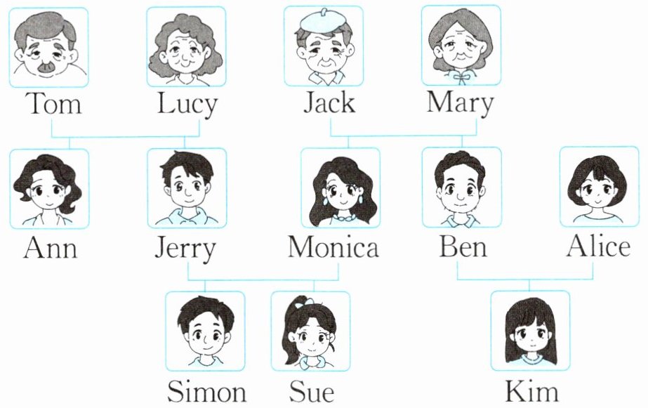 十一、观察 Simon 的家谱图,判断下列句子正(T)误(F)。