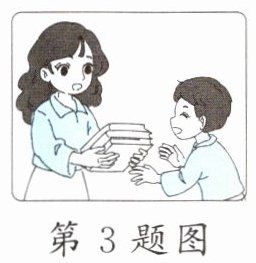 三、根据图片提示,选择正确的选项补全句子或对话,将序号填在横线上。