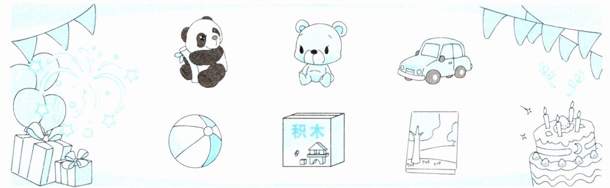 一、Lin Xue 收到了很多生日礼物。听录音,圈出 Lin Xue 收到的礼物。🎵