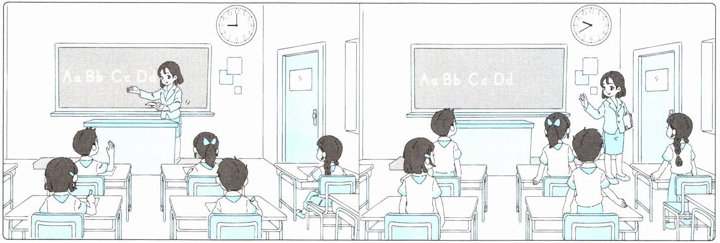 C: It's time for class(上课的时间到了). Be quick(快点)!