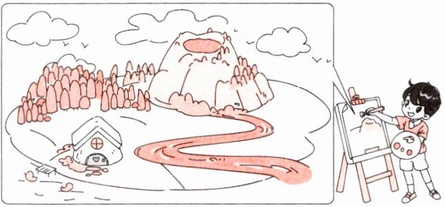 The tiger throws the turtle into the 7. "Thank you, Mr Tiger!" The turtle and the frog laugh(笑) and swim away. The tiger feels very 8.