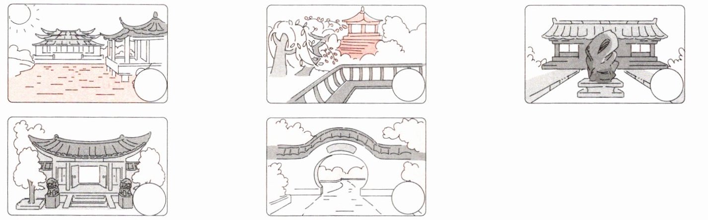 九、为下列图片匹配相应的句子,将序号填在对应的圆圈里。