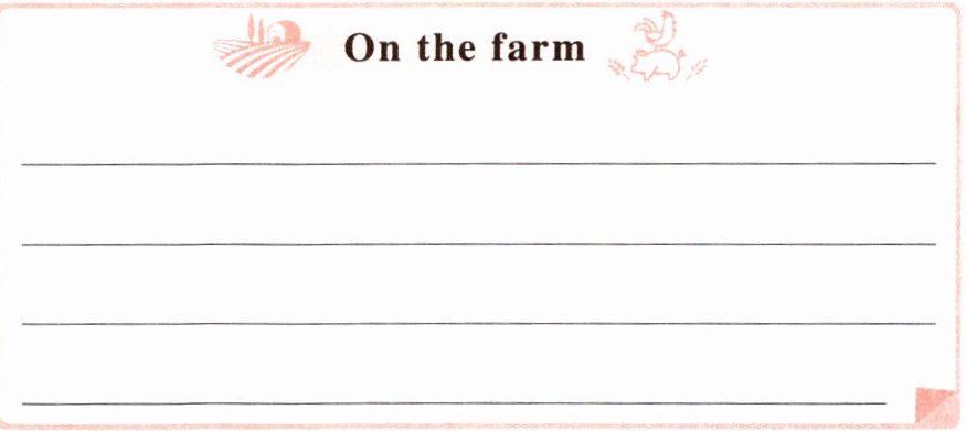 示例: On the farm There is a big farm. Look! There are two pigs. They have big bodies. They like food. There are also two ducks. They have wings. They can swim in the pond. Beside the pond, there's a cow. It's black and white. It gives me much milk. My good friends are two big horses. They have four strong legs. They can run very fast. I like the farm very much.