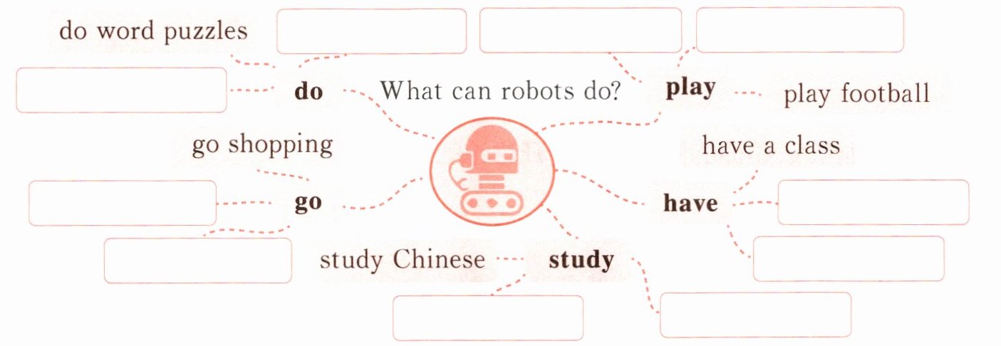 二、示例:do: do housework, do sport play: play volleyball, play the piano go: go swimming, go climbing have: have a picnic, have a talk study: study computer skills, study painting
