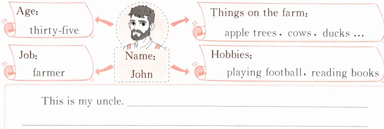 六、假设你的叔叔是 John,请根据思维导图,写一篇短文介绍一下他。要求:语句通顺、语法正确、不少于 5句话。