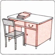 )1. A. It's a teacher's desk. B. There's a blackboard. C. They're some chairs.(