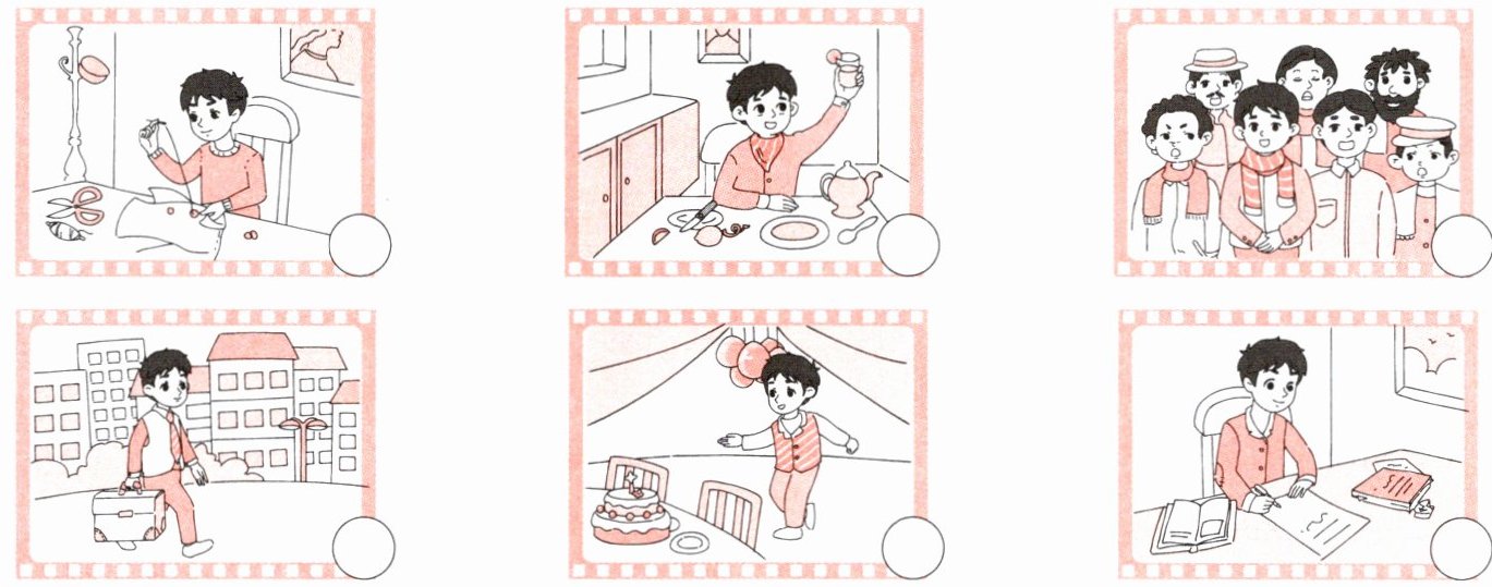 .(一)为段落匹配图片,将段落序号填入对应的圆圈中。