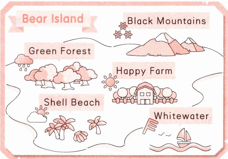 1. Ella is in the Happy Farm. 2. Paul is in the Green Forest. 3. Betty is in Whitewater. 4. Fred is in the Black Mountains. 5. Nobody is in the Shell Beach.