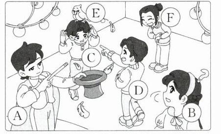 四、听录音,为图中人物或动物匹配名字,将序号填入图上对应的圆圈中。