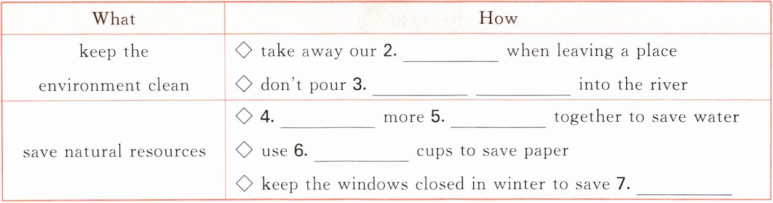 1. beautiful 2. rubbish 3. dirty water 4. wash 5. clothes 6. glass 7. energy