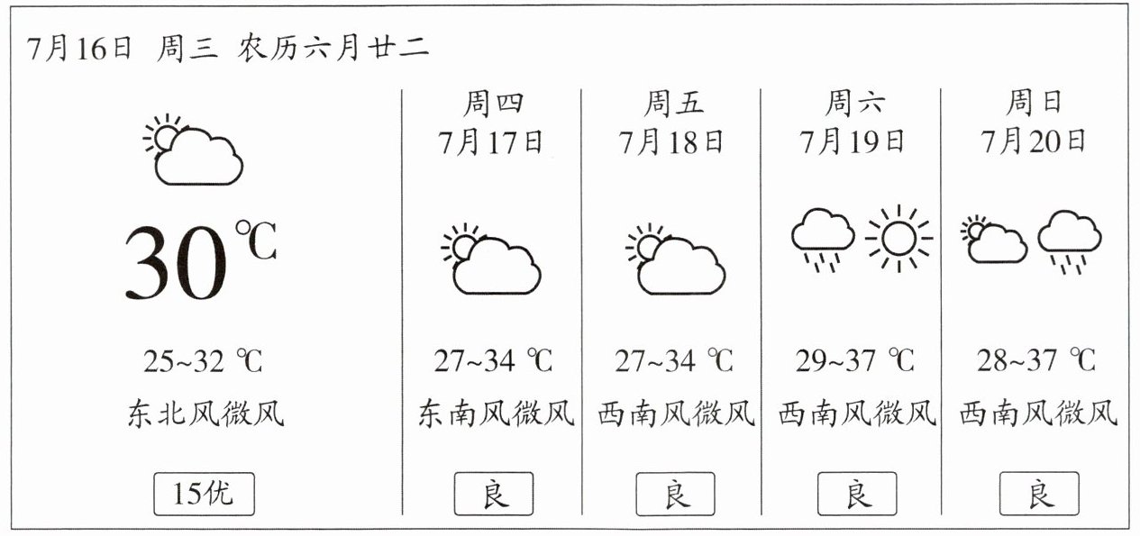 )。(3)上图中有表示每天的天气情况的气象符号,星期五符号表示的是
