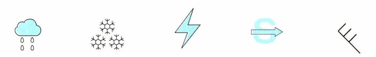3. 天气与我们的生活息息相关,电视台每天都会定时播报天气预报,请在( )内填写下列天气符号的名称。