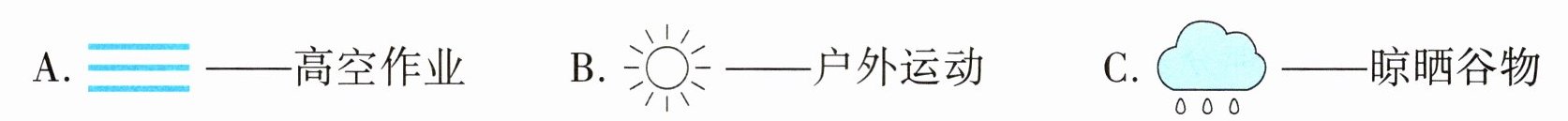 (3)下列天气符号表示的天气与人类活动相匹配的是(