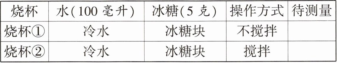 能加快冰糖的溶解。(4)除此之外,奇奇认为影响冰糖溶解快慢的因素还有