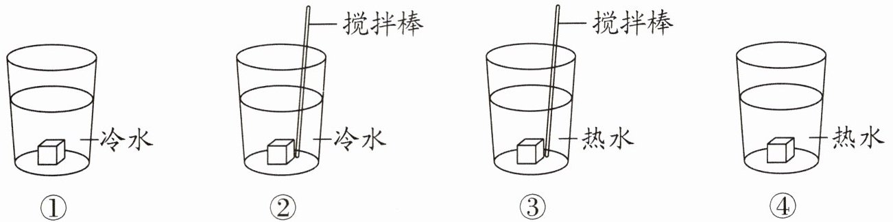 3. 生活实践 奇奇每次喝水都会请妈妈放一块冰糖,放进杯子的冰糖溶解得有点慢,为了寻找加快冰糖溶解的方法,他画出了以下实验方案图(如图所示)。
